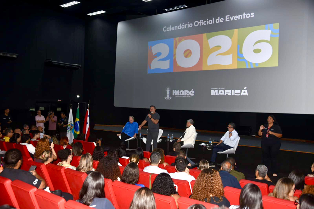 A Prefeitura de Maricá, por meio da Maricá, Arte, Roteiro e Experiências (MARÉ), realizou nesta quinta-feira (05/03) a coletiva de lançamento do Calendário Oficial de Eventos de 2026. O encontro aconteceu no Cine Henfil, no Centro, e marcou o anúncio da programação anual de atividades culturais, turísticas, esportivas, educativas e institucionais do município.